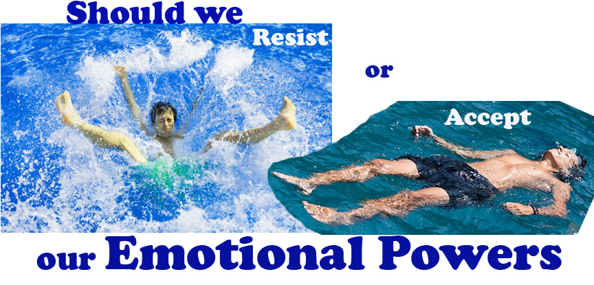 The third step considers if we should resist or accept our emotional powers. The challenge is to redirect our resistance toward our thoughts and actions. And continue our acceptance of all emotional powers.